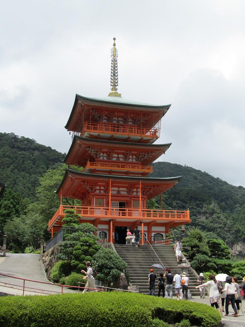 先に見えたのは三重の塔です。真っ赤です。