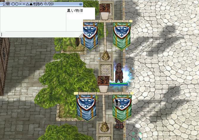 201003/26 補足? らぐらぐろくろく 0 眠い・・・ こんばんは 快斗ですm(__)m 更に補足 アシスタントをしてもらう時に他の人と同じギルド、PT等だと キャラ位置がわかるので、リンク?してないキャラの使用を御願いします。 あと取り急ぎですが^^; 看板役サンプル作ってみました。こんな感じですm(__)m 看板役のアシスタントはこんな感じでチャットを出してください。 解答者はこれを見て、会場に戻って解答してもらいます。 今のところ質問ないようだけど大丈夫かな?|_・) では、今宵はこれにて|ω・`)ノ